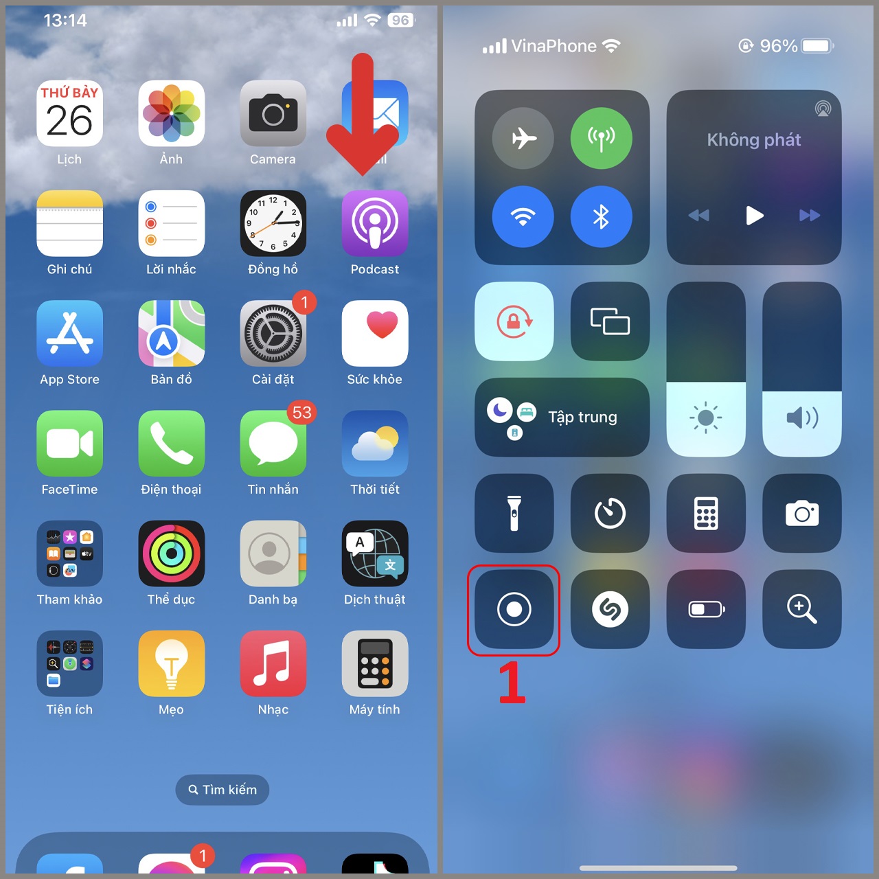 Bước 1: Vuốt cạnh trên bên phải màn hình từ trên xuống để mở trung tâm điều khiển > Nhấn để kích hoạt chế độ Ghi màn hình.