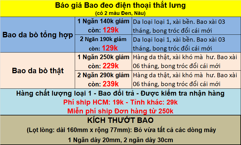 Bảng giá Phụ kiện FB - Thông tin Bán hàng