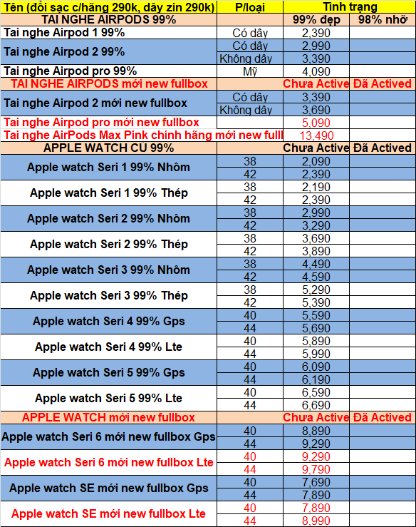 BẢNG GIÁ PHỤ KIỆN KHUYẾN MÃI CHẠY facebook