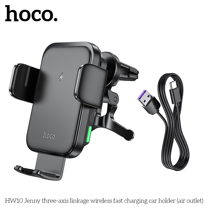 Giá đỡ điện thoại có sạc không dây Hoco HW10 là một sản phẩm đa năng, giúp bạn giữ điện thoại của mình ở vị trí an toàn và thuận tiện khi lái xe. Sản phẩm này được thiết kế để lắp cửa gió của xe ô tô, cho phép bạn dễ dàng theo dõi các tin nhắn, cuộc gọi và chỉ đường trên điện thoại trong khi lái xe.