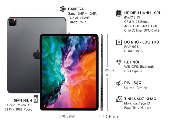 iPad Pro 11 inch 2020 vẫn duy trì sử dụng màn hình Liquid Retina cùng các tính năng hàng đầu như ProMotion, tần số quét lên đến 120 Hz, True Tone, giúp cho iPad Pro trở thành một trong những thiết bị di động sở hữu màn hình tốt nhất hiện nay.