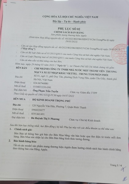 Trọng Phú mobile đã ký hợp đồng mua bán với Cty XNK Viettel, chính thức được bán hàng các sản phẩm Apple, iPhone, Nokia, Anker chính hãng Việt Nam của Cty XNK Viettel