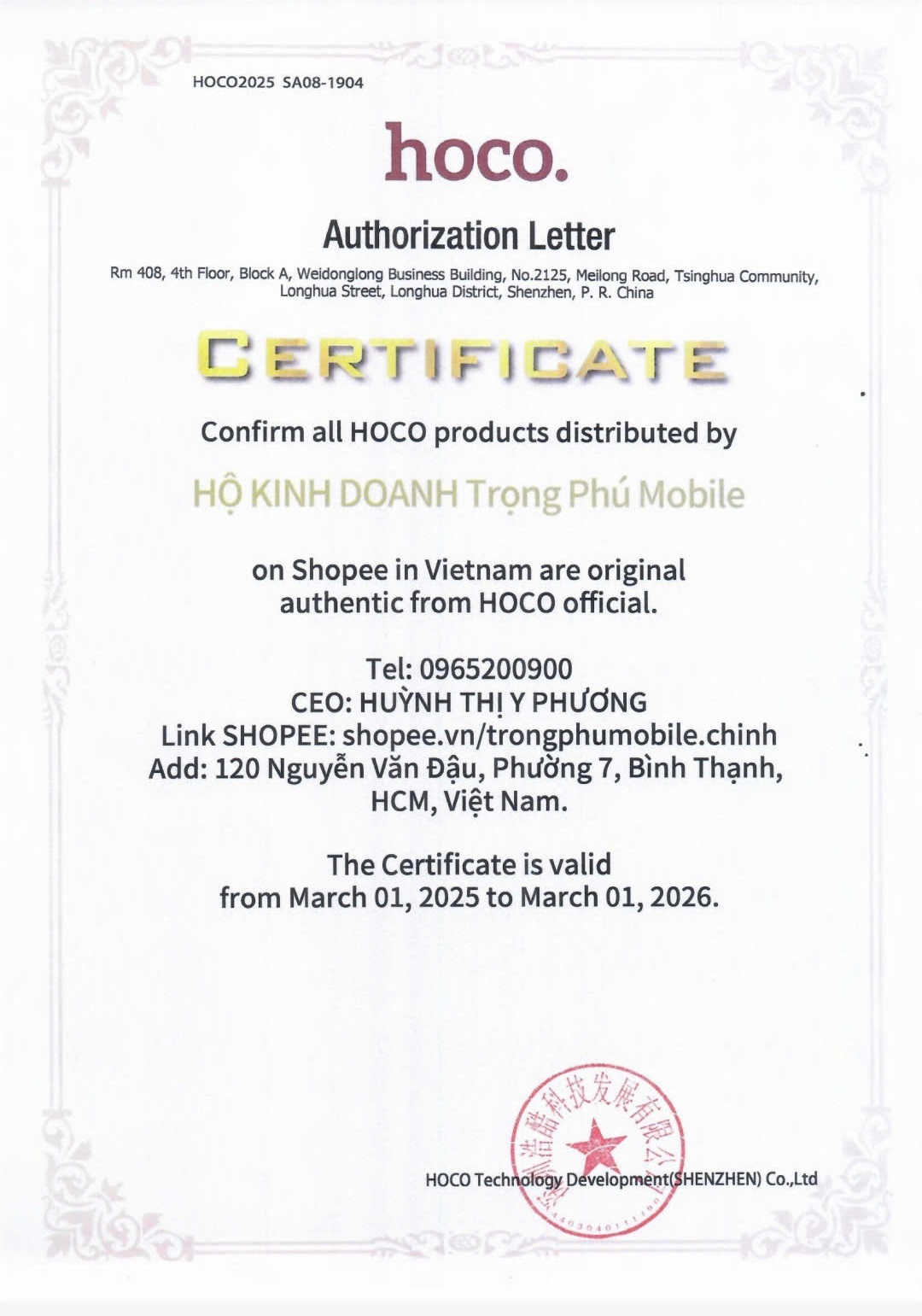 Trọng Phú mobile tự hào là đơn vị ủy quyền bán lẻ sản phẩm của thương hiệu Hoco và Borofone. Các sản phẩm đều có nguồn gốc chính hãng